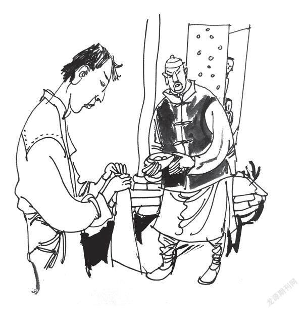 到了门口,郭公子见了主人,忙躬身施礼,却不急着接碗,而是先把肩上的背包放下来。背包是蓝粗布做成的,有补丁,却洗得“潲白”。他先是从包里掏出一块两尺见方的白布,很费力地蹲下来(因为腿有残疾),噘起嘴巴小心翼翼地“噗噗”吹吹主人家的台阶。吹的劲头说大不大,说小不小,只让那些浮土朝两边荡,却并不“腾”起来污了脸面。然后把白布啪啪抖两下,正反面看上两眼,若有污点,用手指轻轻弹去,这才把它平展展铺在台阶上。这时候,郭公子重又站直身子,主人的碗也正好递过来,郭公子便再欠身一礼,把碗放在白布一角,扭头从包里掏出一摞瓷碗和一双筷子。碗都豁牙露齿了,却也洗得干净。碗共四只,正好在白布单子上排列成正方形。郭公子把主人施舍的饭菜分门别类地夹到自己碗中,青菜一碗,肉一碗,豆腐一碗(当然也只是一碗底),米饭或馒头一碗。若主人施舍的种类不够四样,他便把空碗装回书包,免得伤主人面子。这时候主家往往觉得不好意思,下次再见到郭公子,饭菜自然就丰盛些。主人自始至终脸上挂笑看他“摆列”。郭公子席地而坐,开始吃饭。他把筷子拿起来,对着阳光照照,也不知道他在看什么,然后把两支筷子互相敲击一下,再甩一下,开始夹菜夹饭,一小口一小口津津有味地吃,吃得很優雅。孩子们早已兴奋不已,围着他坐下,小手扶着他大腿,眼光随着郭公子的筷子游走,慢慢地流着口水。饭毕,不管饱不饱,也不知是有意还是无意,会很响地打个饱嗝儿,然后从兜里摸出一块叠得方方正正的白布手帕,打开,里面躺着一根牙签,两根手指捏起来开始剔牙。这时主人会问一句:“公子,吃好了?”郭公子忙起身,说:“饱饱的了,叨扰大叔了。”说着就开始收拾碗筷。把碗摞起来,背上挎包,端着碗筷,一瘸一拐地找有水的地方洗刷碗筷去了。