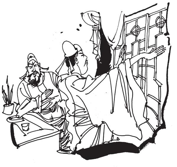 酒过三巡、菜过五味,师徒俩喝得眼晕耳热、兴致正浓。沈周突然指着窗户对唐伯虎说:“我有点儿热,你去把那扇窗户打开透透气吧。”唐伯虎起身晃晃悠悠地向着窗户走了过去,伸手一推,却没有推开,他以为用力小了,又猛力一推,窗户仍纹丝不动。正当他第三次去推窗的时候,忽然发现,这扇栩栩如生的窗户竟然是画在墙上的,他的酒一下子醒了。