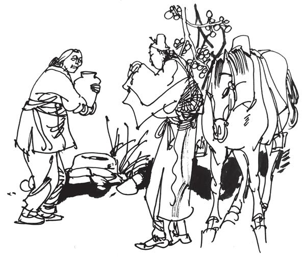 徐继祖见状心里很奇怪,还没等他发问,老婆婆便说:“我家就住在附近,这井水太凉,泥沙虫子又多,公子喝了容易生病,还是到我家里喝杯热茶吧!”徐继祖连忙道谢,牵着马跟在老婆婆身后朝她家走。