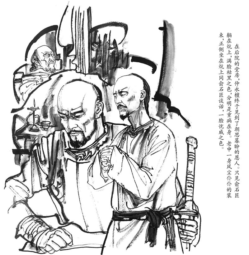 仲永檀跪地磕了个响头,说:“先生,俺是仲大元的儿子,来这里偷着跟您学习诗书三年了……”说着,忍不住泪流满面,竹筒倒豆粒一般把自己“偷师”的始末从头说来。老先生顿起怜悯之心,捋着胡须道:“你且说说这几年你都学了些什么?”
