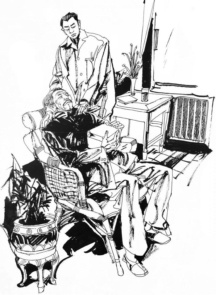 马怀山感到奇怪,便暗中尾随,跟着小乞丐来到一座土地庙。庙前也坐着一个小乞丐,比刚才那个小乞丐略略高一点儿,他的手里捧着一大碗白米饭,饭上还盖了几块肥肉。他抬头看见瘦乞丐走过来,又惊又喜,端着白米饭迎上来。瘦乞丐也举着那串粽子跑过去。两个乞丐碰到一起,瘦乞丐把自己的粽子分了一半给对方,对方把自己的米饭和肉也分了一半给瘦乞丐。两人迫不及待,大口大口地吃起来,狼吞虎咽,很快就把米饭和粽子都吃完了。