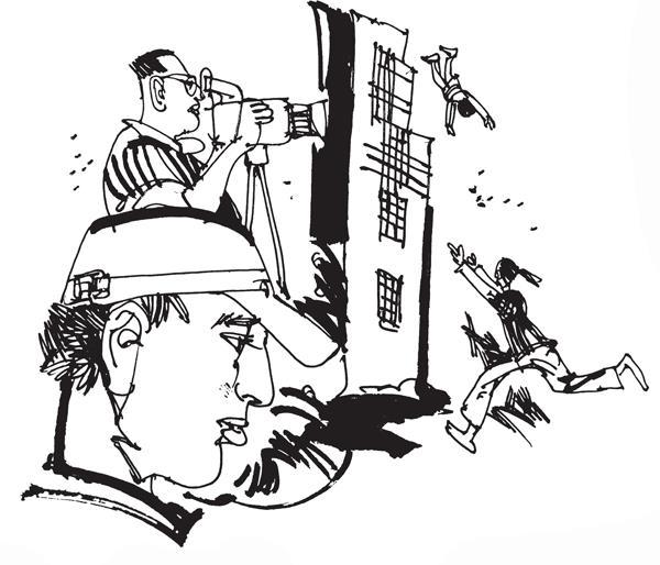 导演请来特技设计师,依照她的儿子制作了一具形态逼真的模型。可是她拼命冲刺,气喘吁吁,总是在模型坠地后的好长时间才能赶到。导演很着急,试拍了几次都没有成功。