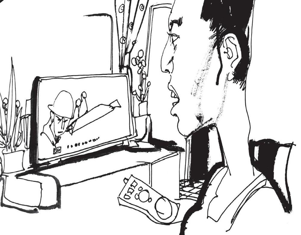 突然,房里的灯泡忽闪了一下,变得非常昏暗,赵江只觉得一股寒气流遍全身。就在这时,电视里传来一阵女人的笑声。赵江慢慢把脸转向屏幕,只见图像很不稳定,忽上忽下的,不过他还是看清了,电视里正演着一家三口在吃饭,丈夫端着个酒杯自斟自饮,一个半大小子在饭桌旁剥花生,妻子忙里忙外,不住地盛饭端菜。他看到了妻子的脸,不由惊叫一声,正是租房给他的梅姑。与此同时,里面的梅姑仿佛也听到了这一声惊叫,竟然从电视里向他微微一笑。这一笑让赵江毛骨悚然,他立刻再换台,想跳到第八频道。没想到每个台都显示“7”,内容都是那一幕!他手忙脚乱地关电视,可是不起作用。最后没办法,干脆一把拽下插头,那笑声终于停止了。赵江这才松了口气,他再向电视望去,只见没电源的电视仍在上演,而那个丈夫正慢慢地把脸转向他,竟是个冷冷发笑的骷髅!