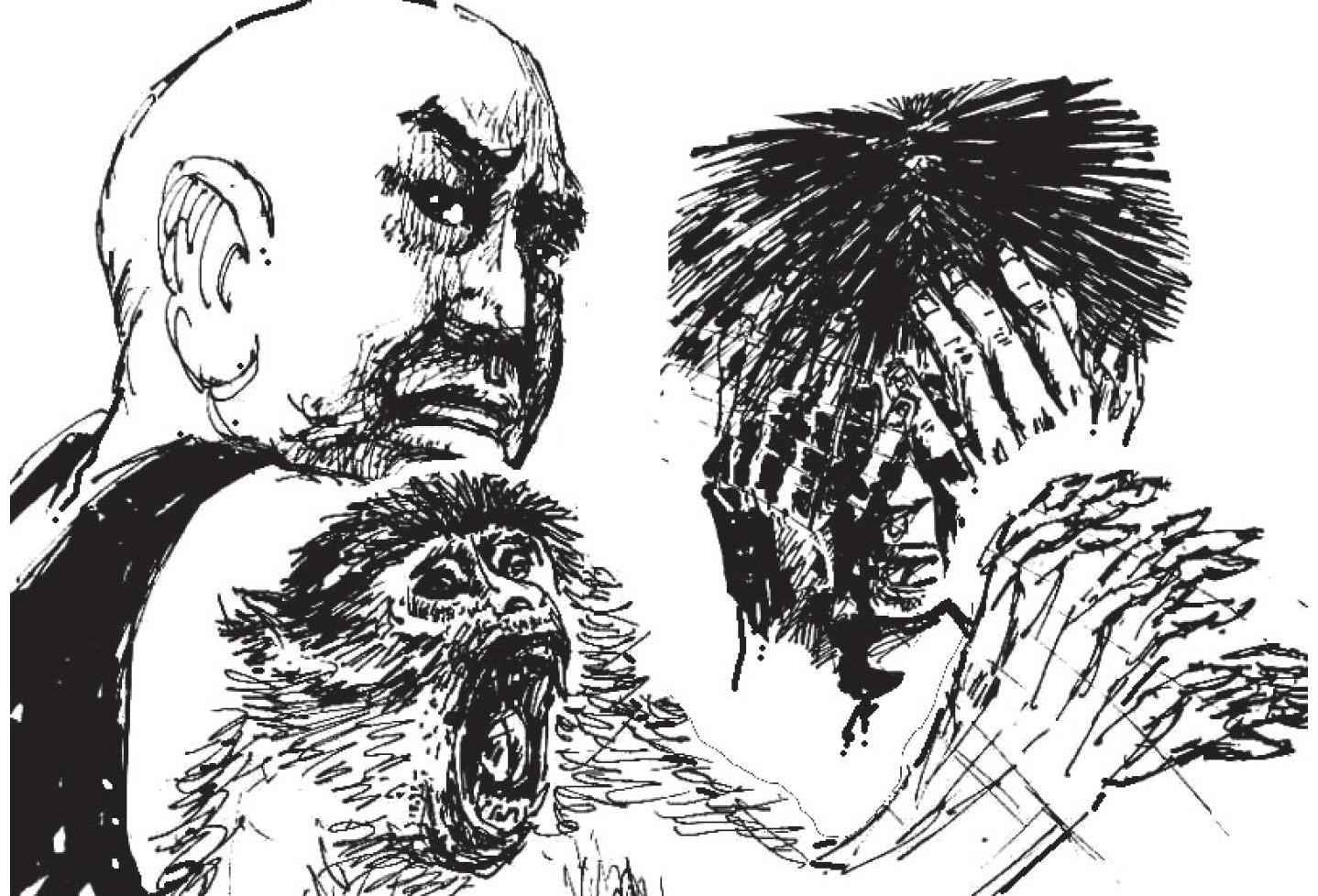 轮到赵老栓了,他早就吓得浑身筛糠,还没等歹徒说话,就要伸手掏怀里的钱。这时,蹲在他腿上的猴子突然蹿上主人的肩头,在他身上撒了一泡尿。赵老栓胸口顿时湿作一片,且散发出难闻的尿骚味。黄毛慌忙用手掩住鼻子,光头则把砍刀指向旁边那个大款模样的中年人。