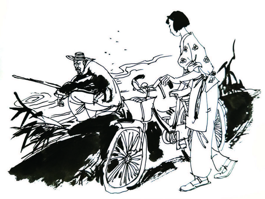 女人身材娇小,骑着一辆自行车,车前筐里总是放着各种各样的饵料。钓不同的鱼需要不同的饵料,女人这里都有。也许是常吹海风的缘故,女人脸膛发红,显出一种极健康的肤色。当她过来,便会有垂钓者凑过去,或买点儿饵,或仅仅上前与她搭讪。女人笑。买她的饵,她笑;仅仅是搭讪,她也笑。那笑让人感觉与她的距离马上近了,却又似乎隔着一点儿什么。