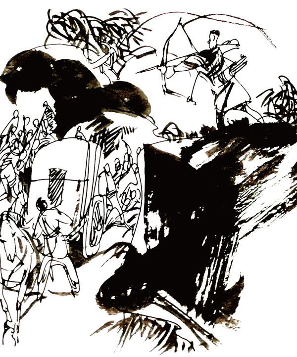 只见张清手中举着一把弓,身后背着箭壶,对强人慢条斯理地喝道:“趁我没出手之前,赶快滚出青狼山地界!不然,我就不客气了。”