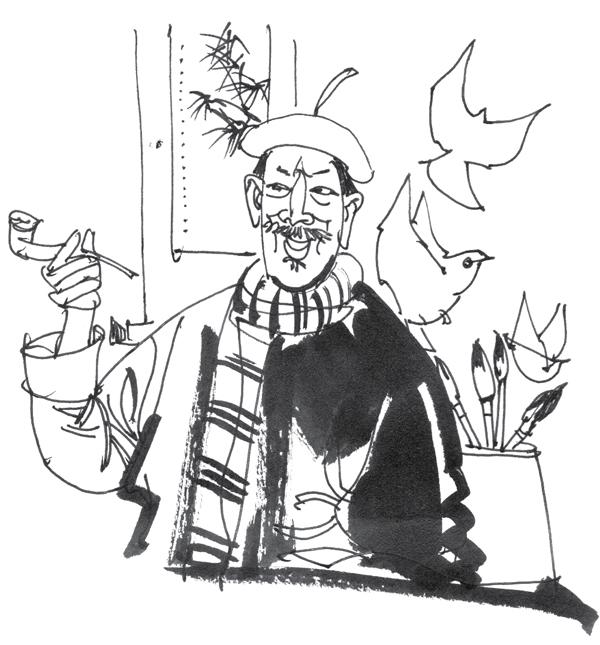 不过最近老白不画鸽子了,一家人陪着去北京领奖去了,鸽子暂时由小徒弟看养着。他画了十多年的鸽子,终于在一个月前被赏识,一幅《群鸽》获得了全国性国画大赛的一等奖,一个收藏家以300万元的天价买下了这幅画,一时风头无比,街头巷尾都在议论这个“一夜成名”的大画家。