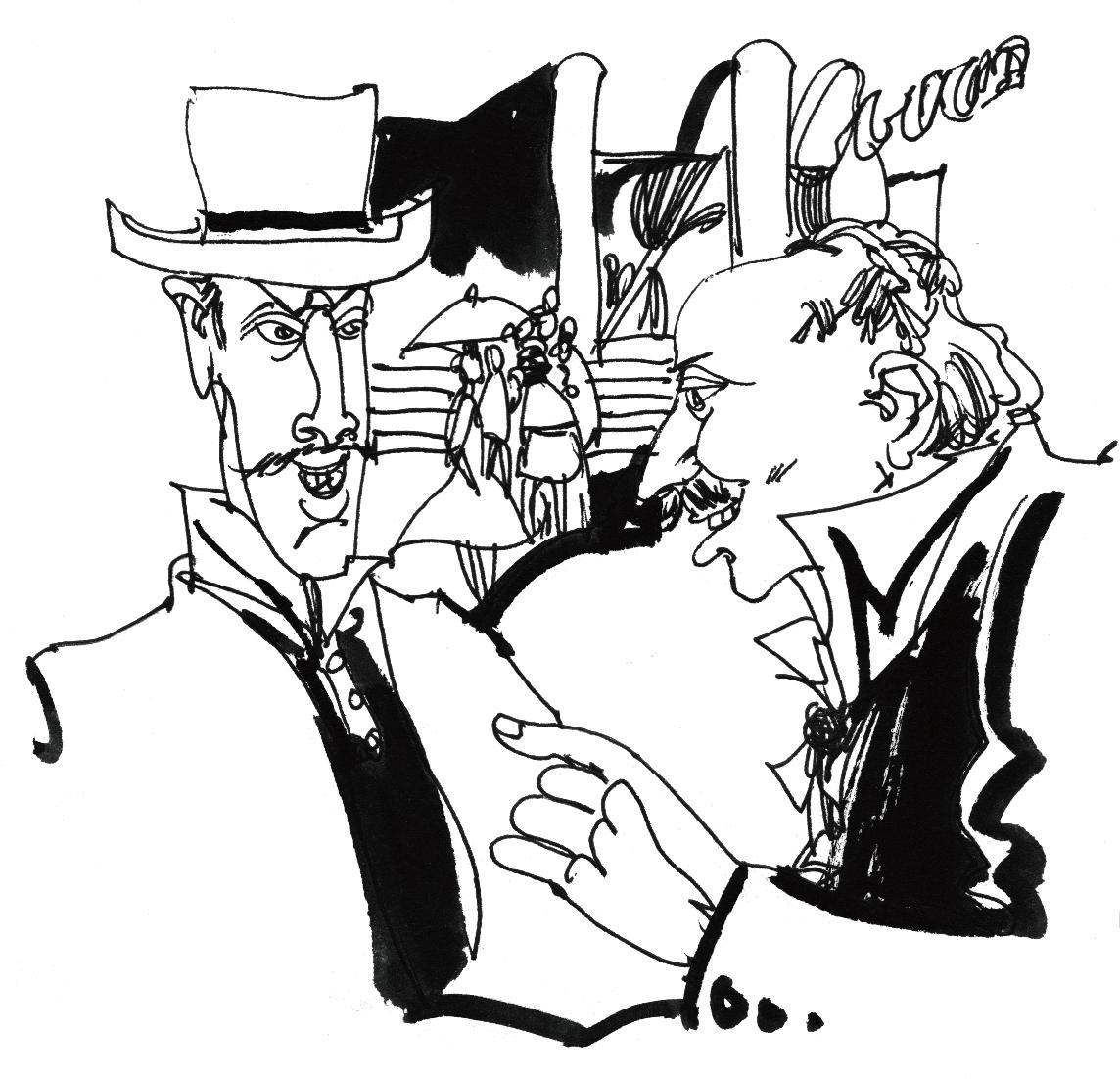 剧院院长米尔纳先生站在门口,正在跟熟人聊天。这时一个壮实的中年男人急匆匆地走了过来,是小镇居民乔西。乔西告诉院长,情况可能不太妙,他在门外抽烟时,留意到有六名外貌像乌索人的单身男子先后进了剧院。