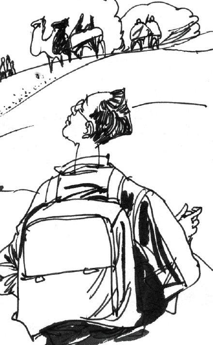 又过了几天,商旅队终于来到了部落,让齐木开心的是,小骆驼竟然和他亲近起来,总是躲在队长背后偷偷看他,三个队员都啧啧称奇,让齐木得意了一把。