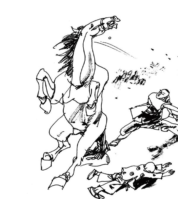 程三石猛一抬头,却见一匹矫健异常的黑骏马,以迅雷不及掩耳之势狂奔过来,眼瞅就要撞到一个七八岁的男孩。