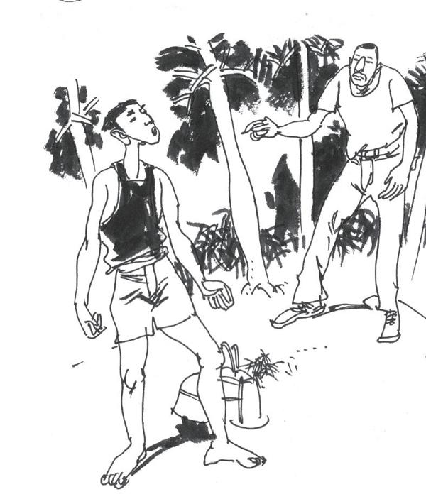 徐采购因为很累了,躺下就睡。到了后半夜,他觉得有点尿急,就起身上厕所。因为隔了很多竹帘子,光线很暗,他睡意沉沉地绕着过道走了好一阵才到了厕所里。上完厕所,他睡眼蒙眬地往回走,走了一段,隐约看到前面有张竹榻,榻上有个帆布包,正是自己的东西,便倒下继续睡。