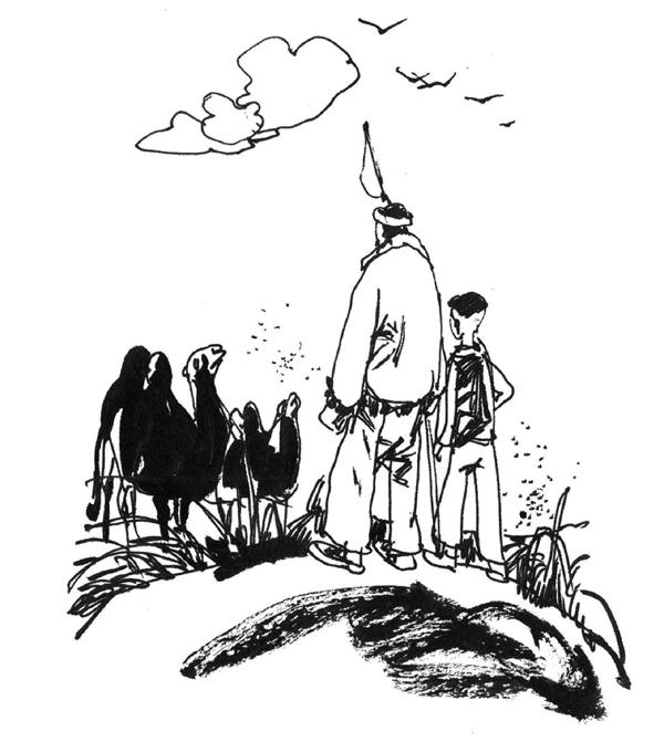 那人来到驼队前,飞身下马,转头进入正在吃草的驼队中四处查看起来。扎伊尔气坏了,他厉声质问他是干什么的。那人四十多岁,见扎伊尔问,冲他一笑,说自己是个生意人,打算经营驼帮贩运货物,因此想物色几头骆驼。