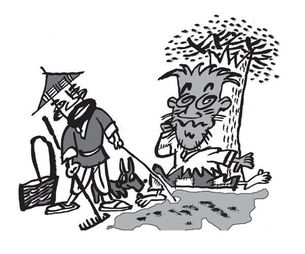 乞丐听了,一点儿不感到羞耻,他拾了一根树枝在地上写了四句话:“朝吃千家饭,夜宿万户亭,未犯朝廷法,任我天下行。”