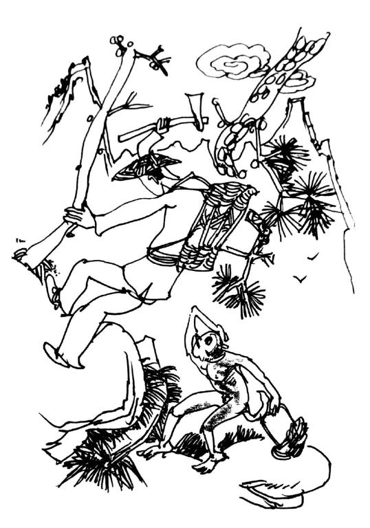 那天,单学正回到山洞,吃了几个烤红薯,正想躺下休息,“吱”一声,偌大一团黑影飞奔入洞。单学正一看,正是猴王,身上还背着一只猴子。猴王见了单学正,把背着的猴子放下,对单学正连连作揖,吱吱乱叫。