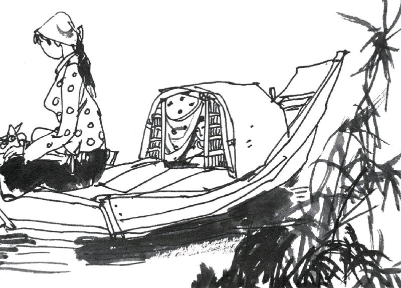 陶疯子被她说得稀里糊涂,听听她的口气,倒不像在开玩笑,也就不再多说,拔掉篙子,解开缆绳,紧一橹,慢一橹地摇起船来。