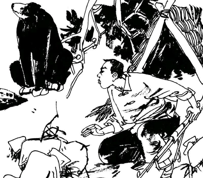 在依稀的晨光里,它向我走来。我举着枪,静静地看着它下一步的行动。母熊在离我三四十米的地方站住了,然后,缓缓地,真的是缓缓地一步步后退,退回去很远,离井口也足够远了,然后,它趴在地上,把两只前爪一齐抱在脸上,掩住了自己的眼睛。