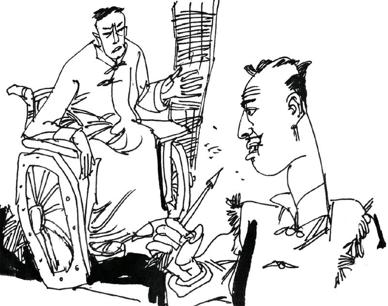 三弟丁叔约坐着轮椅过来,看见那支短箭,不禁脸色一变。丁仲约没好气地说:“你进来干什么?这里没你的事。”下身瘫痪的三弟,一直以来被视为是个累赘,没有谁给过他好脸色看。丁叔约也没说什么,诡异地笑了笑,自己推着轮椅走了。
