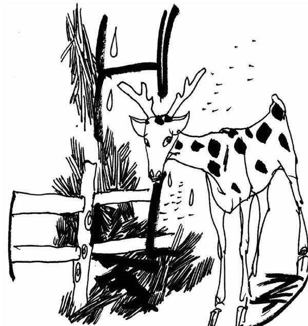 同样的悲剧还在继续。我的母亲曾是北山的歌后,我曾经认为“呦呦鹿鸣”这个词是专为她写的。但是,失去了我的父亲后,母亲极度悲伤,大病了一场。病愈之后变得郁郁寡欢,她有时一天也不说一句话。笑声与欢乐已远离了我和我的母亲。但就是这样,嗜好喝鹿血的钱家是不会想到我们的痛苦的。当我长到八个月的时候,我的母亲也落入了陷阱之中,她身上的鲜血也被钱万有喝了个精光。