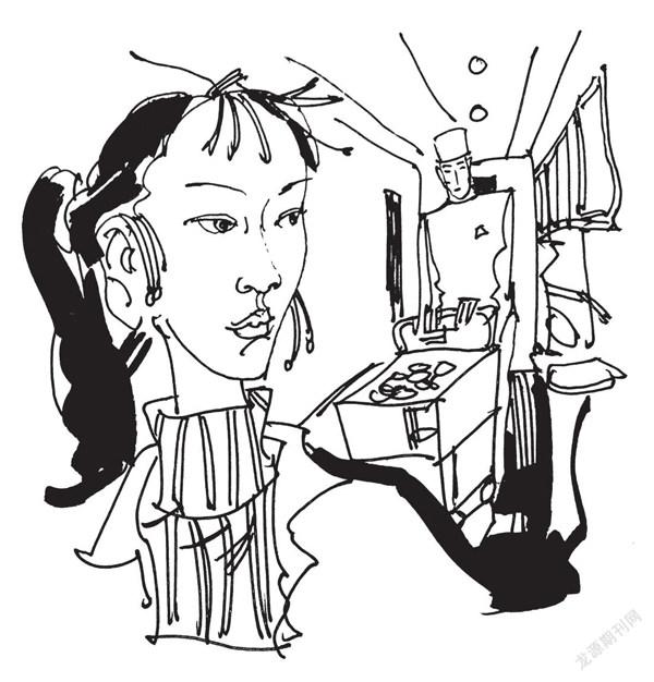 车厢里乘客的目光聚焦到小餐车那儿。一乘客问餐车师傅:多少钱一盒?师傅回答:有20的,有30的。乘客说:来盒20的。