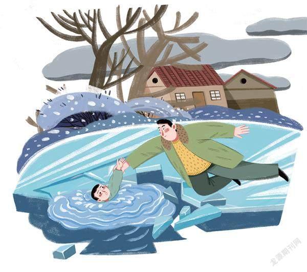 危急时刻,一个身影冲了过来,“扑通”一声跳进冰窟窿,把小石头救了出来。