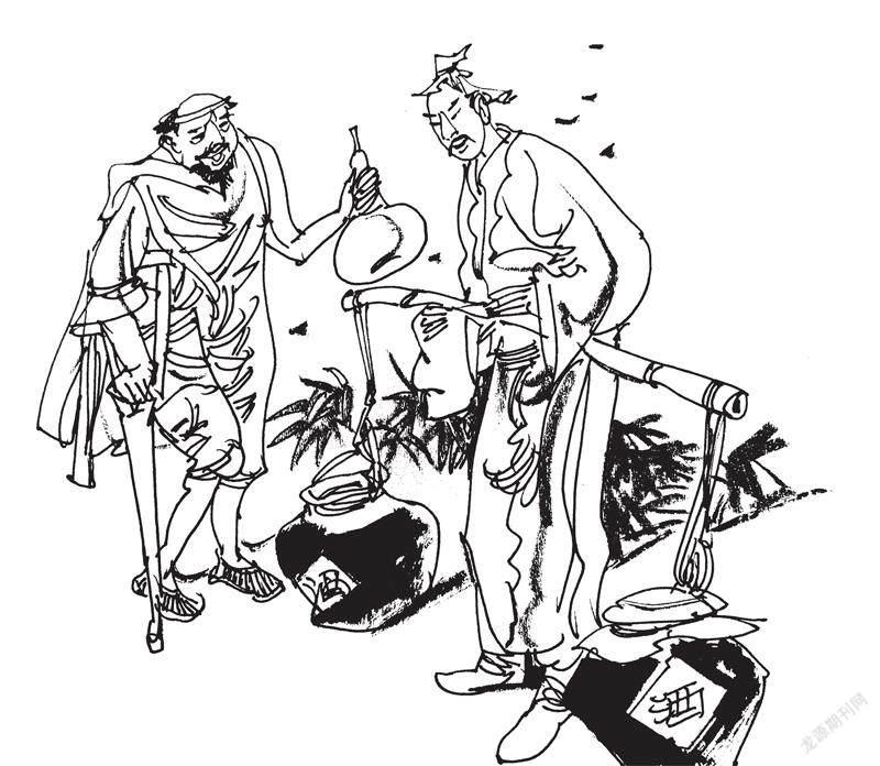打这以后,八仙就不愿到别的地方游山玩水了。尤其是铁拐李,自喝过田父的米酒以后,可算找到“亲家”了,天天拄着拐杖,一瘸一拐到田父家买酒喝,喝完还要装一葫芦带走。日子久了,倒和田父交上了朋友。