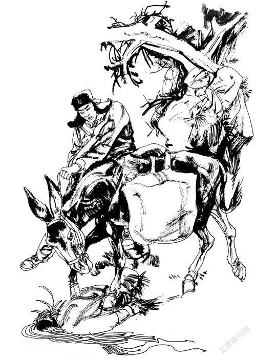 上等兵接上驮水工作的第一天早上,还没有吹起床哨,他就提前起来把驴牵出圈,往驴背上搁装水的挑子。驴并没有因为换了一张生面孔就给对方面子,它还是极不情愿,一往它身上搁挑子就毫不留情地往下摔。上等兵一点也不性急,也不抽打驴,驴把挑子摔下来,他再搁上去,反正挑子两边装水的桶是皮囊的,又摔不坏。他一次又一次地放,用足够的耐心和驴较量着。最后把他和驴都折腾得出了一身汗,可上等兵硬叫驢没有再往下摔挑子的脾气了,才牵着驴下山。