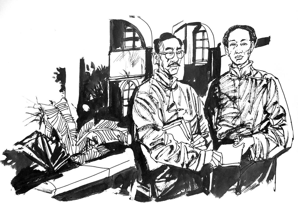 他出现在长沙第一师范的校门口;