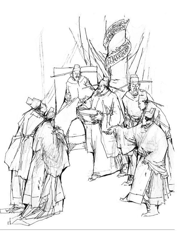坐在悠悠作晃的轿子里,包拯一会儿仿佛还在方才晦暗未明的梦里,一会儿又猛地惊醒过来,街衢的过分寂静让他没来由地生出了莫名的紧张。他撩开轿帷一角,看见那老公公还是像一只老龟那样慢慢踱着,心里便又是一阵烦躁,却又不好发作,只好悄悄催促轿夫往前冲赶。那老太监发现了,忙一侧身横在轿前,神色诡异地对他摆了摆手。包拯拿他没办法,叹了口气把身子缩了回去。不一会儿,轿子却突然停了下来。包拯又撩了轿帷来看,这下他火了:那老家伙自顾自地蹲在地上,屁股高高翘起,眼珠子像被啥东西钩住了,老半天不肯起来。