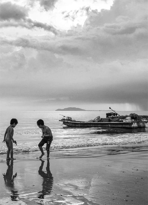 海塘边,垒起几块石头,架上铁锅,再把刚刚捕获的“带柄蛏”等战利品放进去,在老师指导下再放些水和盐。点燃捡来的枯枝、芦苇,趴着身子,噘起小嘴,使劲往“灶”里吹气,不一会儿,炊烟就袅袅升起来了。童心总与好奇联系在一起,期待中,心急的同学忙跑到其他小组进行侦察,看到有的小组已经开始品尝,看着他们大呼小叫的样子,赶快回来又是添柴又是吹气……终于,锅里开始冒热气,揭开锅盖一看,带柄蛏已经开裂了,刚才无色无味的水已经变成了乳白色,无须任何调味品,一道别具风味的海鲜汤烧制成了。揉揉被烟熏得通红的双眼,舀一碗尝尝。哇噻!那种鲜美的味道很难用语言来表达。