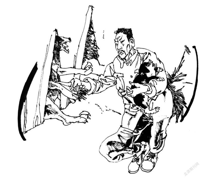 的叫声传出很远。狼又来了,它转了几圈后把前腿伸到木板中间的洞里捞小猪。亲戚抓住狼腿猛力往下拉,用杀猪刀穿透狼腿根部,像楔子卡在木板上。他从容推开木板,用木棒打死狼。他还是赚了,一张老狼皮比一只小猪值钱,还炖了一大锅狼肉吃了呢。