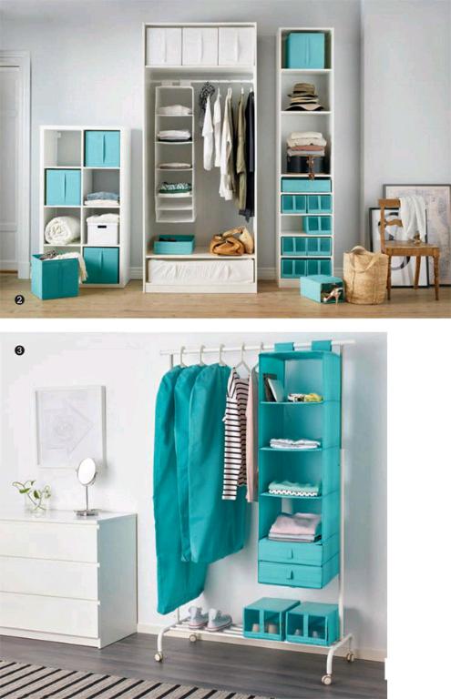 2.白色柜子加上孔雀蓝色的单元收纳盒,既有收纳功能,又有装饰作用。
