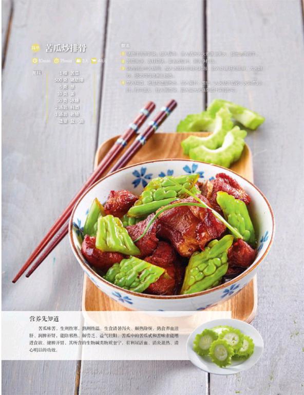 说起苦味食物,相信大家首先想到的就是苦瓜!是的,苦瓜又叫凉瓜,别看它长着一层难看的蛤蟆皮,却是美容蔬菜,不仅可以祛痘,还能美白,这都归功于其含有较高的奎宁和维生素C,而且苦瓜也是夏季清热降火的常用食材。苦瓜在《本草纲目》中这样记载:“增食欲,除邪热,解劳乏,清心明目,益气壮阳。”看到这里,足不足有个冲动,想拿起苦瓜直接啃两口!先别急,苦瓜所含的草酸会妨碍食物中钙的吸收。因此,在炒苦瓜之前,应先把苦瓜放在沸水中焯一下,待去除草酸后再烹调享用,并且这时候也没那么苦了!