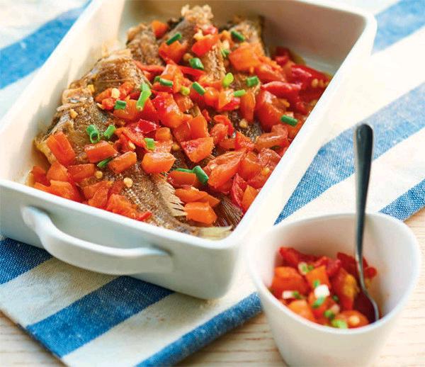 500克小黄花鱼/100克剁椒/14个番茄/15克姜/6瓣蒜/5克葱/3克白糖/1汤匙老抽/2汤匙料酒/适量盐、油