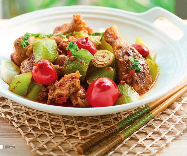 锅内倒油中火烧至六成热,下鸭块煸炒2,3分钟后捞出沥油。锅内留底油大火烧热,下大葱段、姜丝、蒜片爆炒出香味,放入泡椒碎、豆瓣碎,转小火炒出红油。