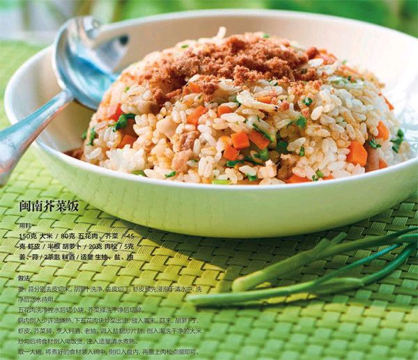 五花肉洗净控水后切小块。芥菜择洗干净后切碎。锅内倒入少许油烧热,下五花肉块炒至出油,放入姜末、蒜末、胡萝卜丁虾皮、芥菜碎,烹入料酒、老抽,调入盐翻炒片刻,倒入淘洗干净的大米