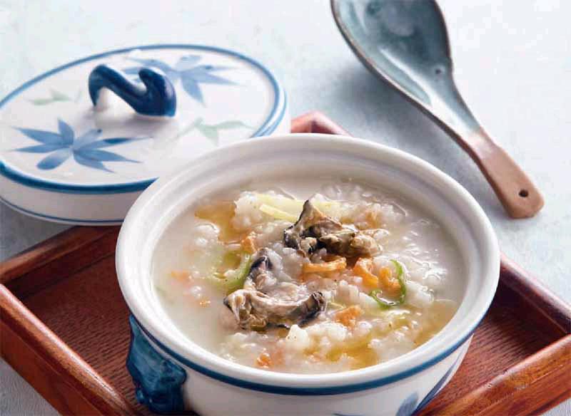 锅内放入大米,注入清水,大火煮沸后转小火煮30分钟,放入海米、姜丝、葱碎拌匀后煮10分钟,放入腌制好的牡蛎肉小火煮熟。