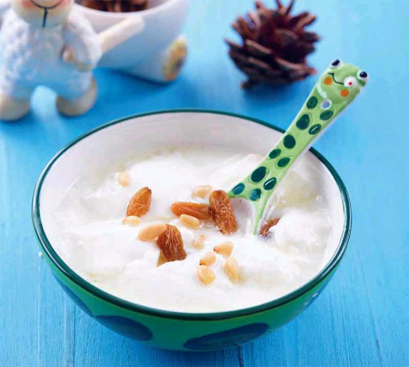 2.奶锅中倒入牛奶小火加热,放入糖粉,边放边搅拌,待牛奶变浓稠后关火,将其倒入碗中冷却。