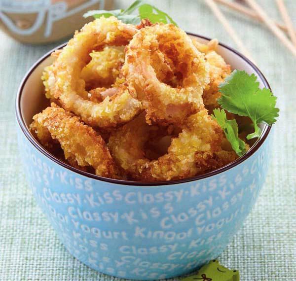 咖喱鱿鱼圈1只鱿鱼2个鸡蛋200克面包糠、面粉25克咖喱粉5克香菜3克胡椒粉1茶匙盐适量油