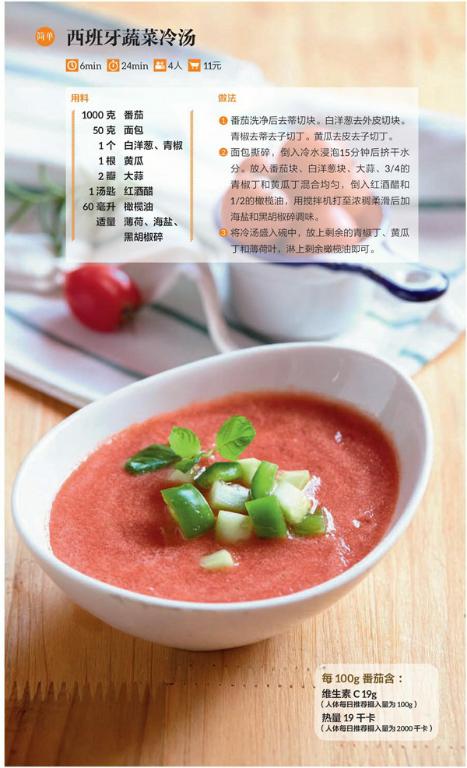 番茄,也叫西红柿,是全世界栽培最为普遍的果菜之一,中国、美国、意大利盛产。所以地中海人的美食中常常有茄汁口味的菜系,这与中同菜有很多类似之处,比如茄汁大虾、番茄蔬菜汤等。番茄可以当作水果般生吃,补充维生素C;煮熟后食用,其番茄红素和其他抗氧化剂含量会显著上升,起到降低患心脏病的风险和抗衰老的作用。番茄酱的抗氧化效果特别强大,因为番茄酱在制作过程中都是选用当季最红最熟的番茄。番茄的热量很低,所以节食减肥和爱美女性可以每天食用一两个番茄充当零食,而且生食很方便,味道酸甜多汁。此道菜中主要是用番茄调色调味,并补充一日所需的维生素C和其他矿物质。维生素C能美容,可促进胶原蛋白的合成,还能防止黑色素沉积在皮肤底层。另外维生素C还能促进铁的吸收,使肌肤的血色充足。所以生番茄中的天然维生素C可是女性美容的好帮手哦。
