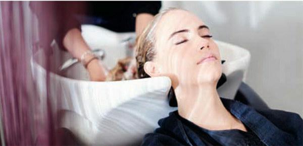 首先用温水将头发充分浸湿,一定要将头皮浸湿,如果头发没有完全浸湿,那么很难清理头皮,还容易在头皮和头发上形成化学残留。可以适量增加冲发的时间,将头发表面的灰尘初步冲洗一下。