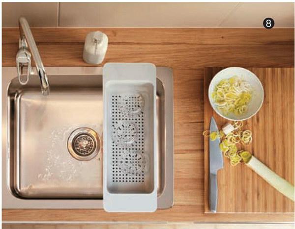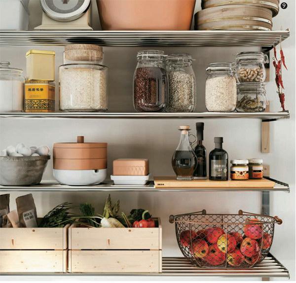柜子和抽屉作为收纳的“主力军”,对解放狭小空间自然是起到十分关键的作用。但也需要分门别类,不是一味塞满就好。像水槽下面的柜子是最潮的地方,就不适合放食品、面粉和电器制品,但放锅、金属盆等可以水洗的厨房用具和洗涤用品就完全没问题。像是萝莎不锈钢铜锅,内表面采用#316不锈钢,锅盖则使用医用不锈钢材料#304,防腐蚀、防锈,不用担心在存储过程中被潮气侵蚀。而史东不粘导磁系列内表面采用美国Whitford Eterna大理石涂料,耐腐蚀,耐刮花,除了不用担心潮湿的问题,将锅具叠放也不用担心会刮花表面。燃气灶下面的柜子跟湿气重的水槽下面就不同了,什么都可以放,最好是放上烹饪用的油、酱油、醋、料酒等调味料。吊柜上面则可以放一些不经常使用的,跟季节有关的轻物品,不过要注意可以从正面看到内藏物。面对难以整理的厨房用品时,抽屉的隔板就发挥作用了。除了选择现成的各式隔板外,还可以利用空盒子做隔板,或者利用筐和小型密封容器,这样就能充分地利用抽屉里的空间。
