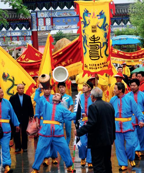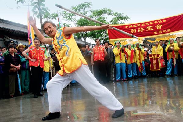 “幡鼓齐动十三档”最活跃的地方是北京的“三山五顶”,即门头沟的妙峰山、石景区的天台山、平谷区的丫髻山、东直门外的“东顶”、左安门外弘仁桥的“大南顶”、永定门外的“小南顶”、西直门外长椿街附近的“西顶”、德胜门外土城东北的“北顶”以及右安门外草桥北的“中顶”,尤其是妙峰山的朝顶进香,规模最大,影响最广。此外,明清时期,在朝阳门外的东岳庙庙会期间,很多香会在去妙峰山朝顶之前,也会到这里先走会演练。这一时期,北京的武会因为庙会的兴盛空前繁荣,各会档不仅在京城内的庙会上相互走动,竞技切磋,而且与天津地区的香会也经常往来交流。