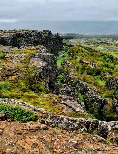 远古时期,美洲大陆与亚欧大陆都是很活跃的板块,它们在大西洋中缓慢移动,然后碰撞,碰撞到一起的地方形成一条椎骨般的中脊。中脊被挤压而隆出水面的部分,就是今天的冰岛。因此,冰岛在地壳运动史上便拥有一个特殊的位置,整个岛屿地处美洲大陆和亚欧大陆板块的交界处,是大西洋中脊沿线唯一暴露在海平面之上的土地。