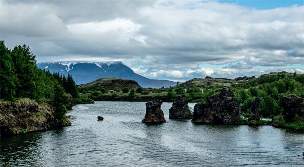更让我们舒缓下来的是山脚下开满了鲜花,正当花期,这些顽强的生命争相绽放,把原野装扮得嫣然一片。但奇怪的是,在一片葱茏中却几乎见不到一棵树。冰岛算得上是世界的极寒之地了,长冬漫漫,狂风时起,一刮就是昏天黑地,飞沙走石,高大乔木应该还未能扎根就被刮倒;尚来不及孕育出新芽,落叶的季节就到了……因此,冰岛地表生长着的都是易活而短命的草本植物。