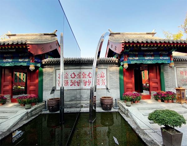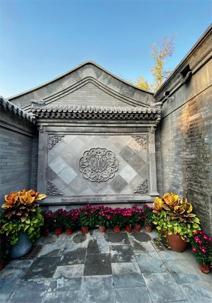 门前停下脚步,见已有人开启拍照模式,在门前合影留念。排队等待进馆之余,欣赏着很有历史感的朱漆大门,上方挂着由王蒙题写的 “东四胡同博物馆”牌匾。跨过大门,古香古色的影壁便呈现在眼前,这也是北京四合院的“标配”,在影壁的右侧是“胡同礼物”,里面琳琅满目的都是北京文化创意产品,很有特色,准备参观完博物馆后出来再逛逛这里。