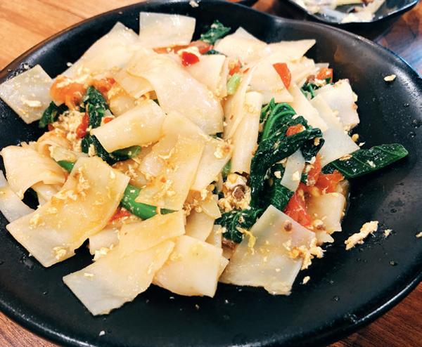 牛干巴和米线是我比较熟悉的云南美味,自从在昆明吃过之后念念不忘,海丽耶的这两道菜也没让我失望,可谓是还原了云南的味道。我还想尝试一些别的没吃过的小吃,接下来我又要了一份炒大救驾。听名字不知道是什么食材,这道菜属于云南腾冲地区的名菜之一,也是云南十八怪之一,食材是饵块,用糯米做的,类似于把米线做成块状,吃起来酸辣爽口,令人食欲大增。