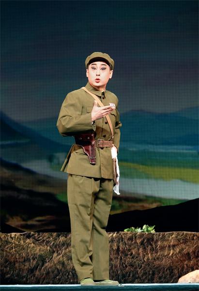严伟才出场,飒爽英姿,小导板“风雨行军一夜晚”唱完,剧场里掌声雷鸣,这句唱腔设计高度艺术,不剑拔弩张,突出了志愿军战士的质朴、艰辛,让人感到志愿军是最可爱的人。