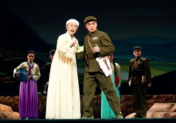在公路上抓到的俘虏兵,丑角演员张福占数板念得有韵。哨卡的两个李伪军以及后来上来的伪排长(刘桂华饰演)都演得不瘟不火、恰到好处。配角的分寸往往是很难掌握,“卯上”抢戏,平淡了松懈。《奇袭白虎团》的每一个角色都精彩,当年作为样板戏演出时,伪排长的扮演者周宝山老师在哨卡被志愿军拿下时,走一个“硬抢背”赢得满堂彩。