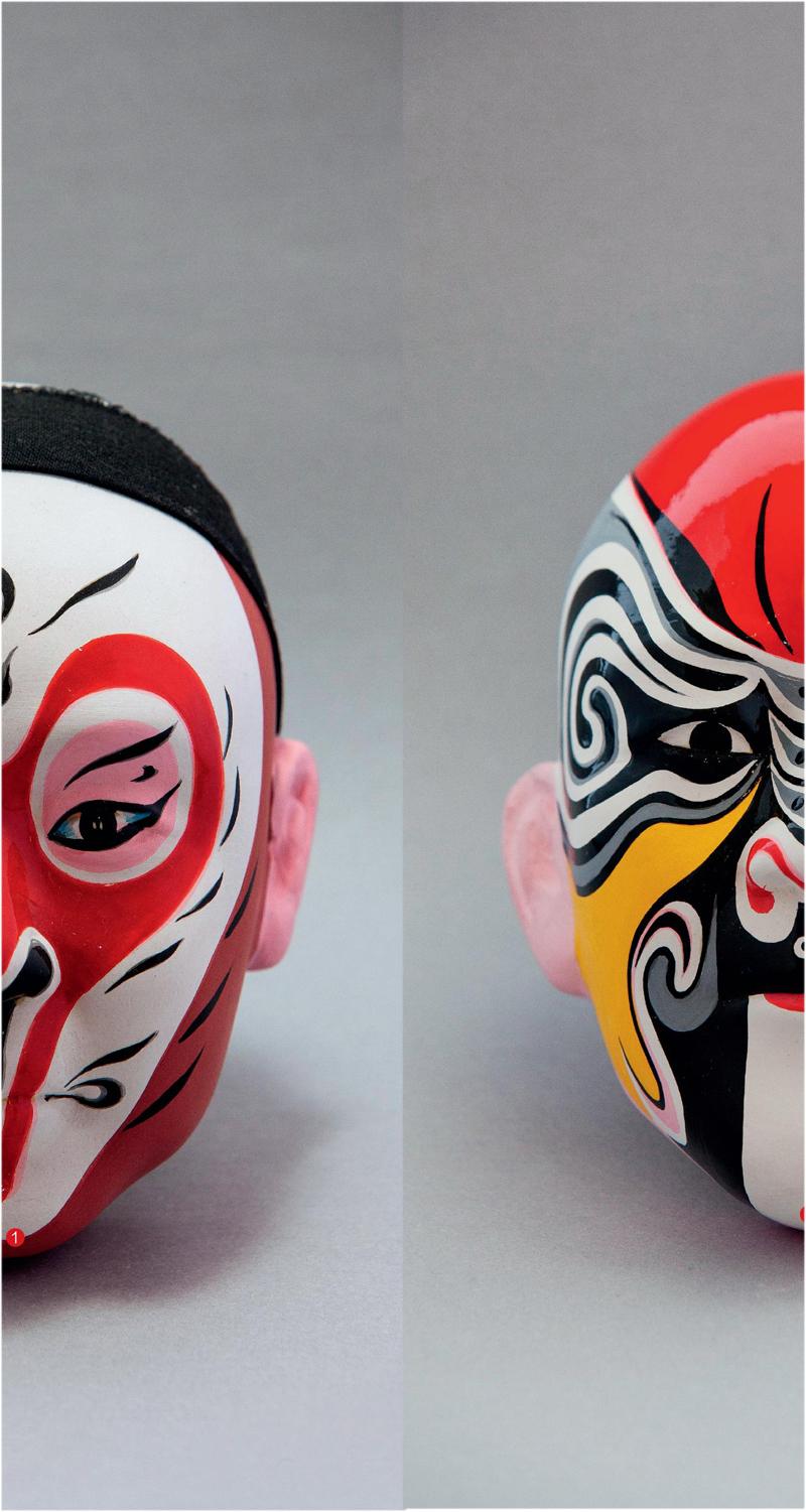彩塑京剧脸谱再现京剧脸谱的神韵,不同的人物性格,使人物鲜明起来