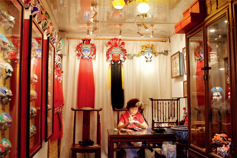 彩塑京剧脸谱第四代传承人佟秀芬。